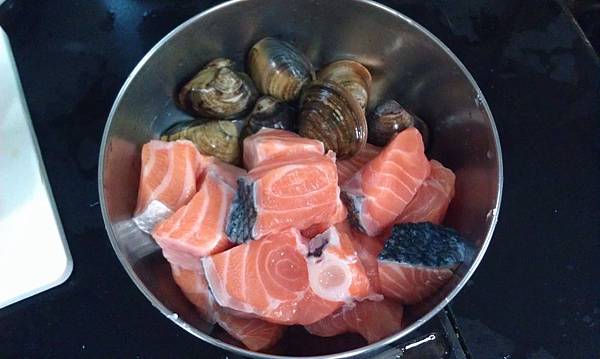 1. 鮭魚最好早上去菜市場買 順便請魚販幫你切塊 我選的應該是較靠近胸部的魚肉 油脂較少