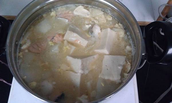 1. 把所有東西都洗好切好後, 除了味噌以外的東西都丟入鍋中
