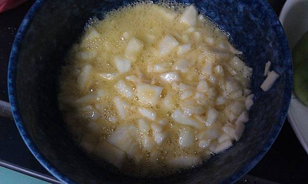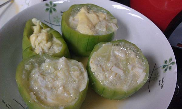 5. 把絲瓜囊 筍丁 及蛋汁混好